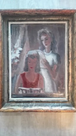 Krasický Marcel 1943 - Dvě dívky ,olej, karton, 27x36 , dobový původní rám